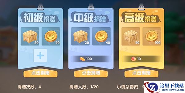 不过小镇的建设,也是需要每位居民共同出力,大家可以通过捐献一定的物资给小镇,为今后的建筑升级打下基础,让居民生活更加便利,比如建筑外观升级,商店可选择的商品增多等等~