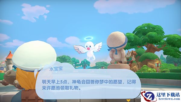 手游的许愿池就在摩尔报社的门口,小摩尔下次找完艾米聊天后就可以去扔摩尔豆,许个愿试试,第二天会有随机礼物掉落哦!