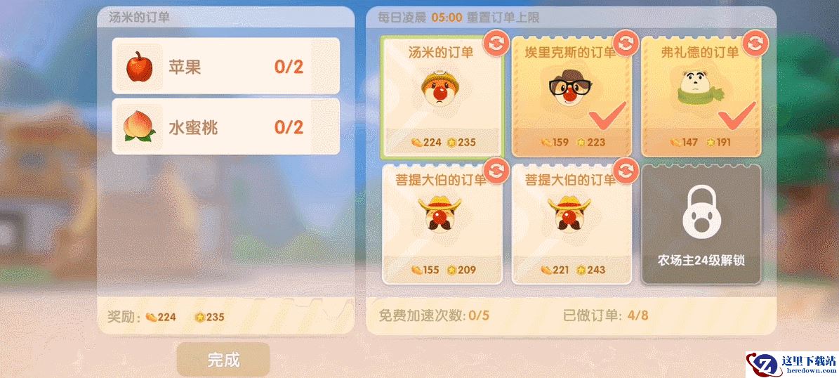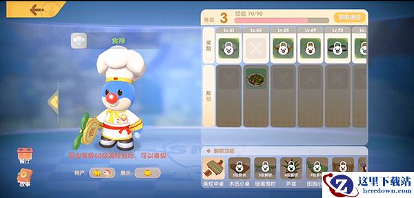 比如,农夫升级可以获得更多工具和种子,厨师升级可以获得更多菜谱和餐厅家具。