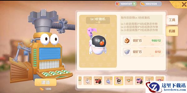 随着农夫等级提升,大家可以到R7机器制造商店升级农场工具,升级后的工具操作起来,会大大提升种田效率,同时,也可以选择自动洒水机,自动播种机和自动收割机等自动化机器来提高种田效率。
