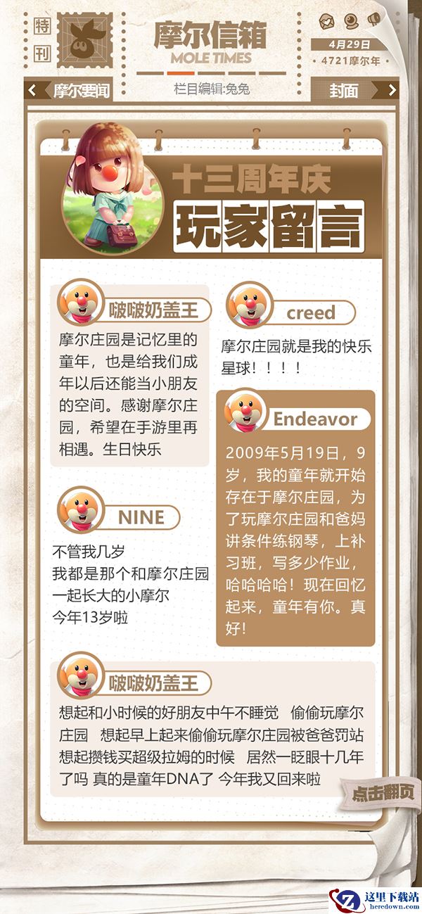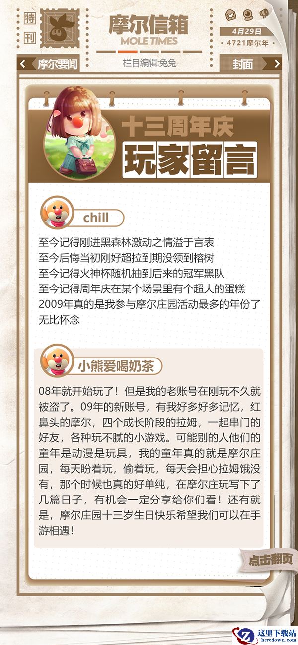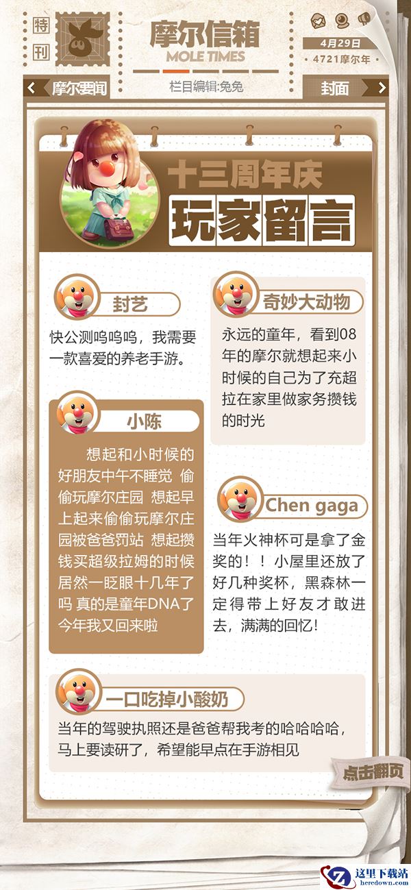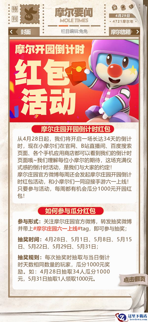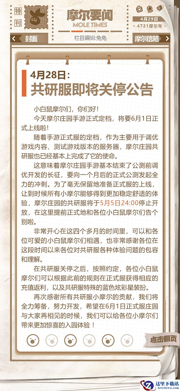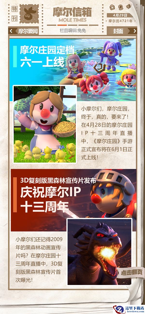 第一期的摩尔时报将于手游上线后正式发布,主要板块有庄园要闻,摩摩趣味,摩代时尚和下期预告等。