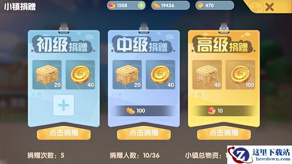 完成捐赠后,便可以增加小镇繁荣度并获得对应的贡献币。