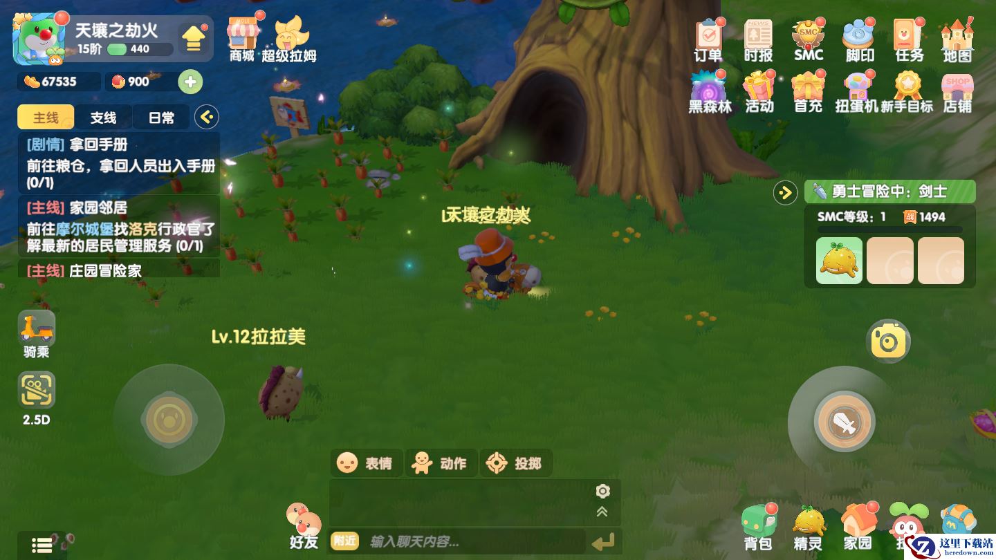 在野外可以遇到精灵,靠近后点击右方攻击按钮即可进入战斗,挑战有3级的限制,职业等级低于怪物3级或以上则不可挑战。