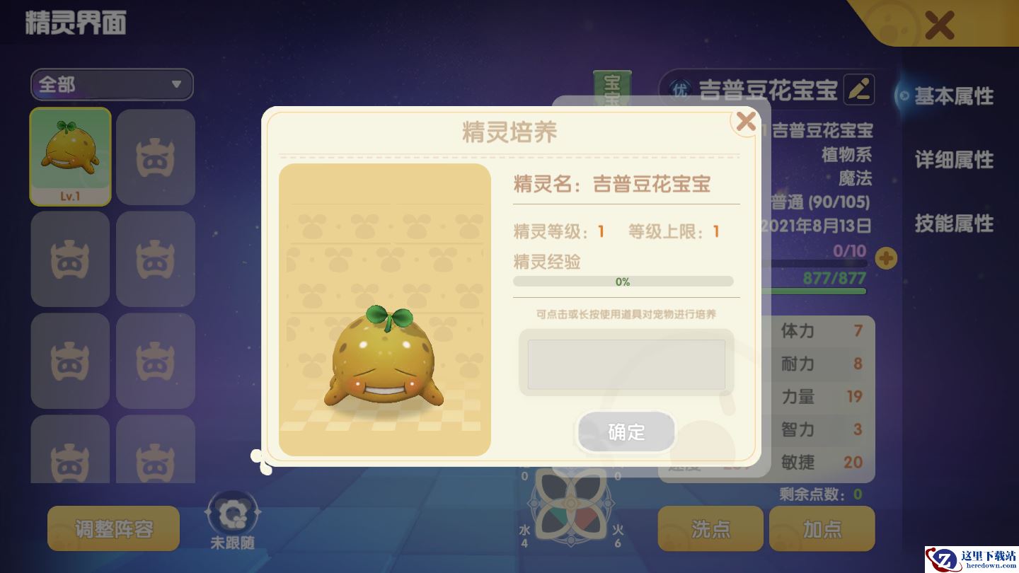 在初始界面点击“精灵”按钮进入精灵培养界面,然后对每个精灵进行单独的培养。