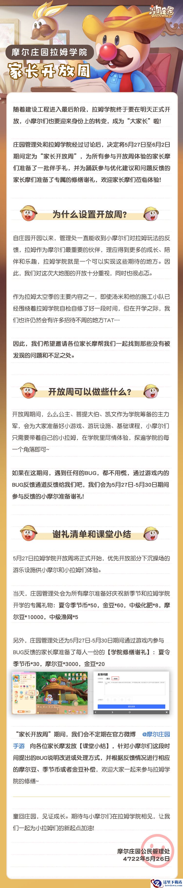 为了更好地倾听各位家长对拉姆学院的问题反馈,我们特意将5月27日至6月2日定为“家长开放周”,邀请大家一起来修缮拉姆学院,按要求反馈BUG还能获得【学院修缮谢礼】哦~