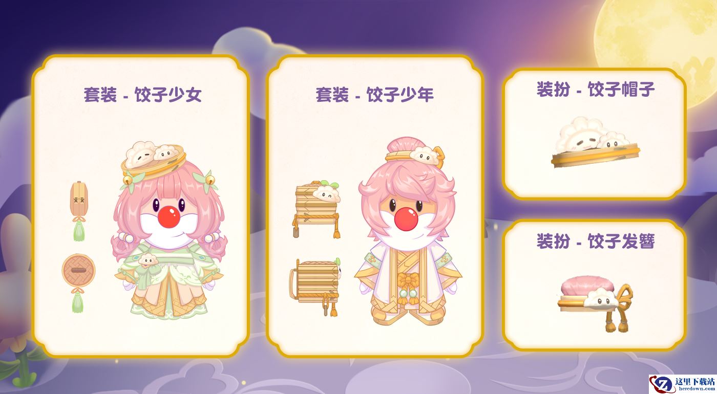 庄园给大家准备了全新的中秋套装【饺子少年】和【饺子少女】,还有给拉姆准备的新装扮【饺子发簪】和【饺子帽子】,过节就是要一家人整整齐齐!