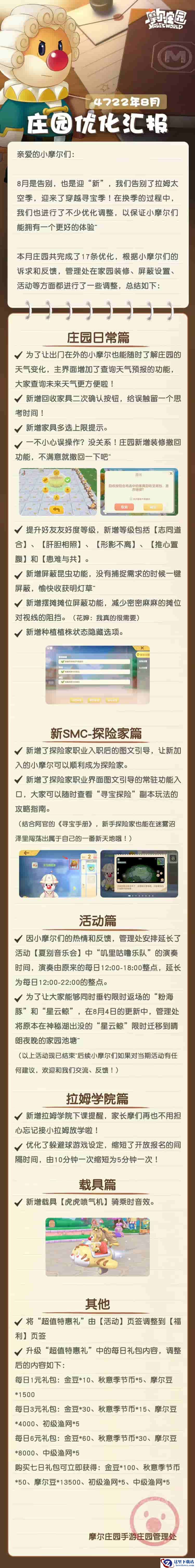 庄园的优化离不开大家的建议和督促。营造更温馨美好的庄园环境,我们一直在路上。在九月的第一天,一起来看看庄园管理处的优化汇报吧!