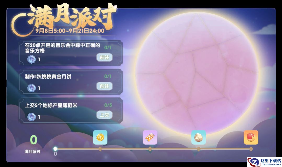 在满月派对开启的过程中,小摩尔们只要及时完成每天的满月派对任务,收集足够的“月影碎片”就可以获得对应的活动奖励。