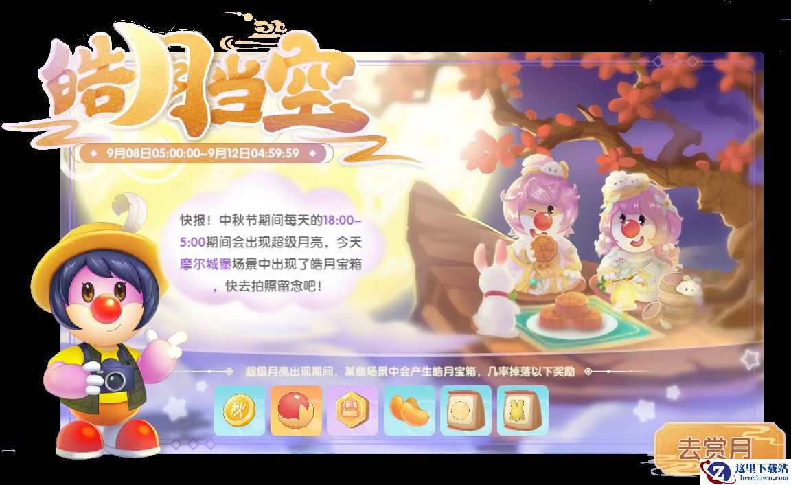 在小摩尔们欣赏皓月的同时,大月亮也给大家准备了中秋礼物!超级大月亮出现期间,每天都会有一个对应场景出现皓月宝箱,快去带走宝箱中随机掉落的奖励吧~