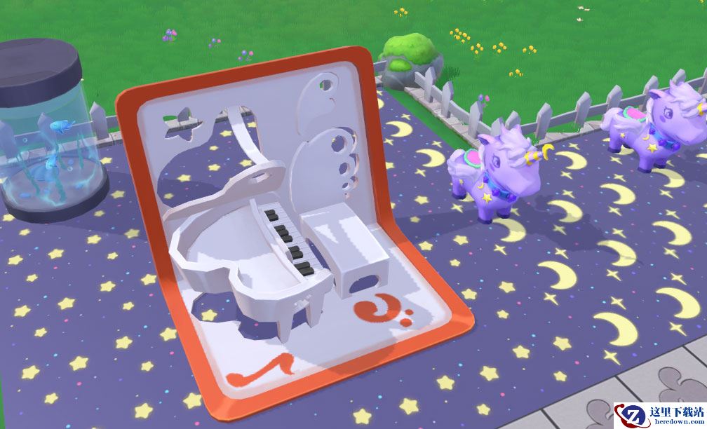 路过广场露天演奏区,沿着铺满星月的大道向前走,就能看到如立体贺卡般打开的梦境折纸钢琴。