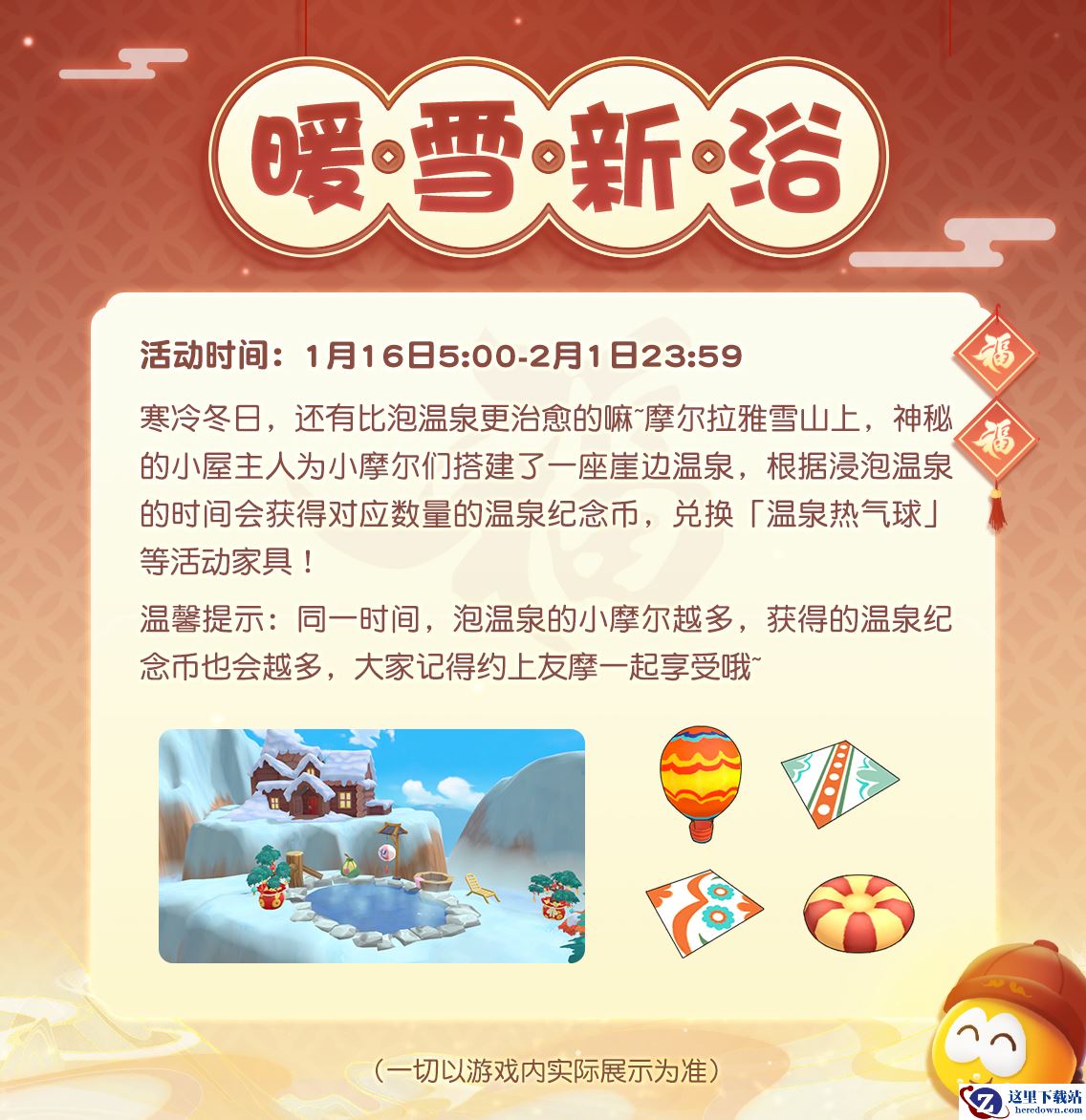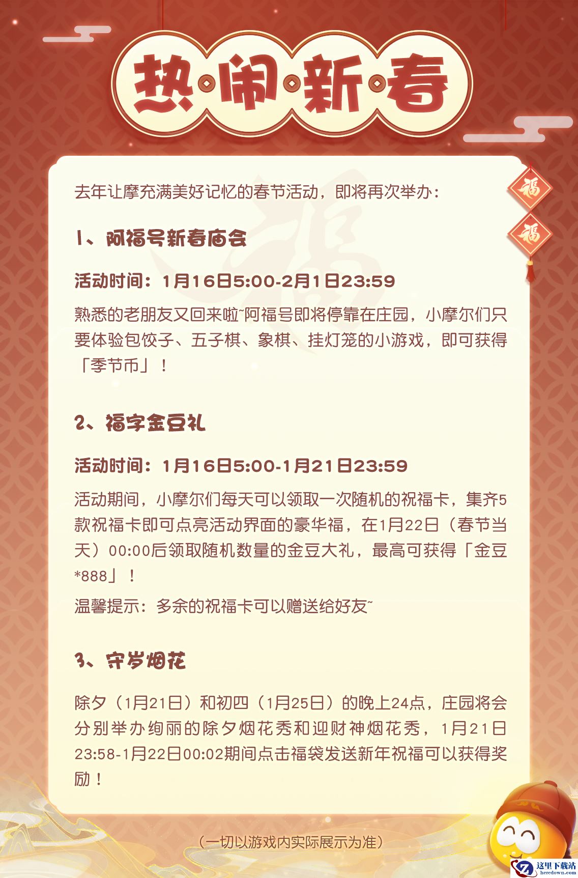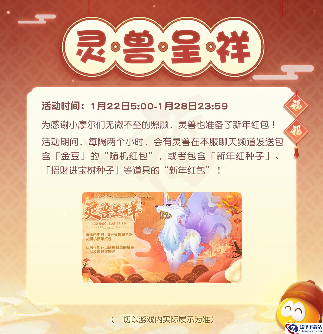 雪山温泉治愈寒冷,月梦兽幼崽免费领取,灵兽呈祥派发红包福利,阿福号回归和小摩尔一起贺岁!新春活动这么多,一起来看看吧~