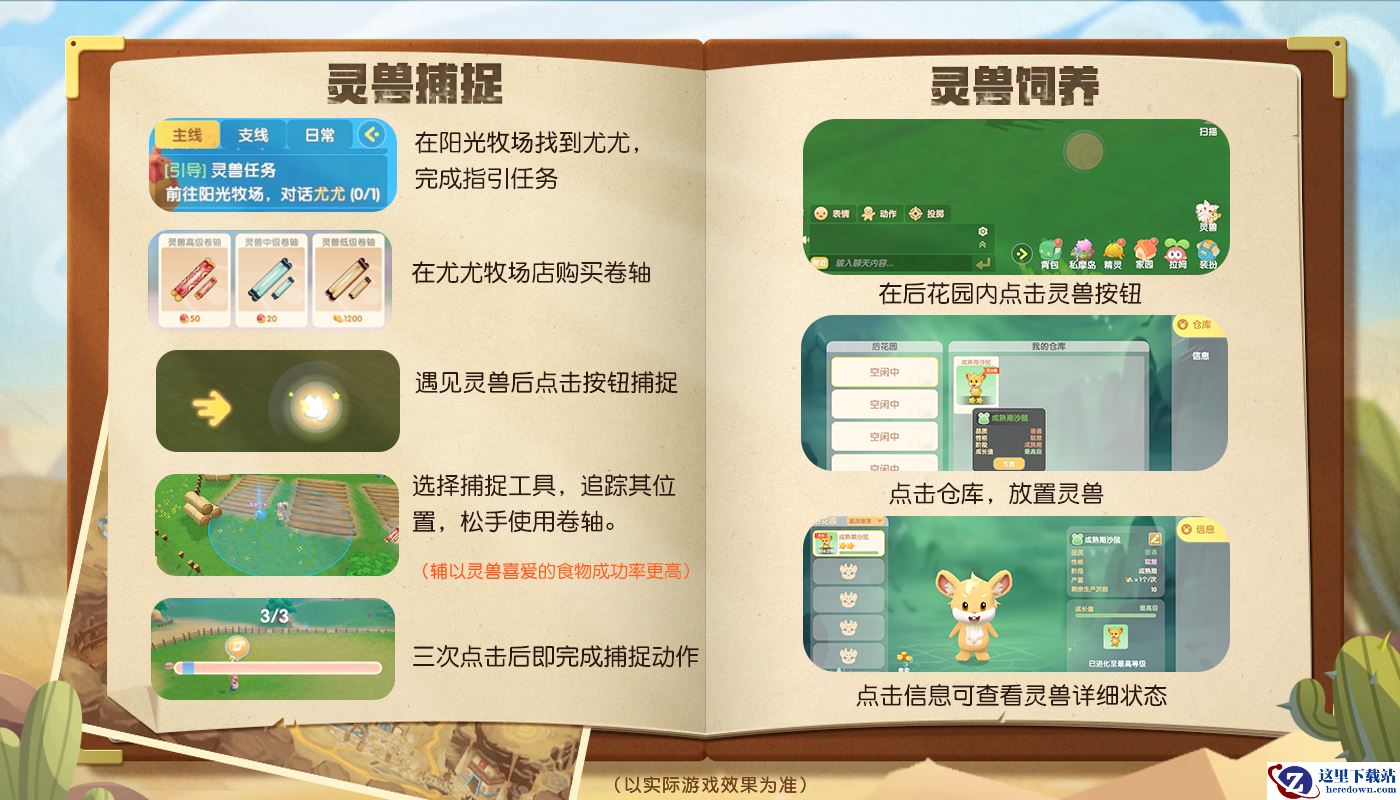 灵兽在庄园出没,但是要得到它们还需要工具和指引。快去找尤尤完成任务,获得卷轴捕捉灵兽!