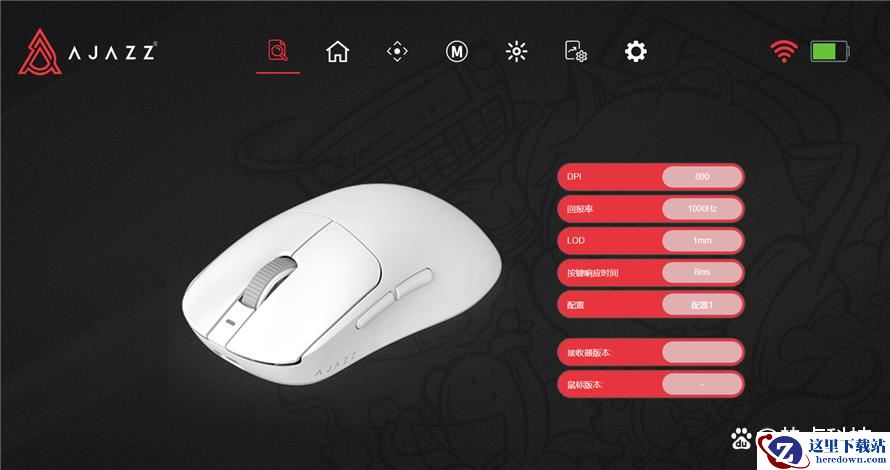 网页驱动的首页是鼠标当前的一些参数设置信息,包括DPI、回报率、按键响应时间等等。