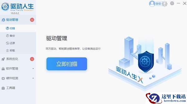 1、打开驱动人生,点击驱动管理的“立即扫描”选项,软件会自动检测电脑设备存在的问题;