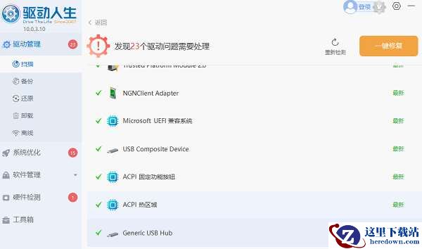 2、根据检测结果,我们选择对应的usb驱动设备进行升级驱动,然后再次扫描便可发现这时的驱动已经最新。