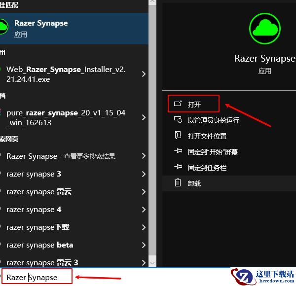 右键点击图标,选择“打开Razer Synapse”。