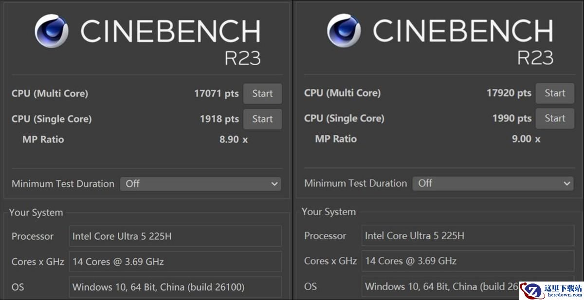 接下来看看实战测试,下表是该在性能模式下的处理器基准跑分(单轮跑分):