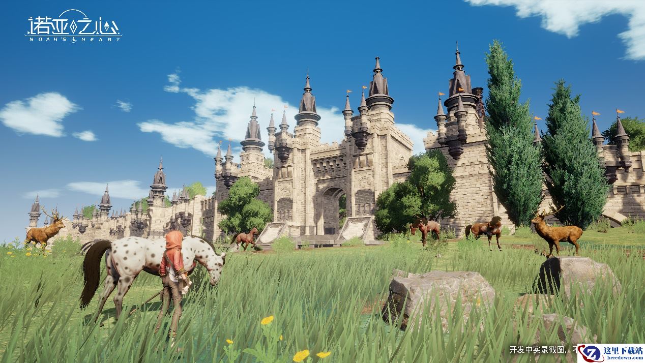 清澈的湖水滋养着这片土地,麋鹿和小马共同享受着澄蓝的天空。而人们常常忽略了这片生机,将目光投向远方,投向历经岁月打磨仍坚固如一的城墙和高塔,那里隐隐透出喧嚣的人声。