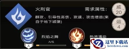 火刑官顾名思义,是以火属性为攻击特色的一个职业,同时在《地堡2》的原版设计中由物理职业“野蛮人”转职而来,因此也会兼顾到物理输出,他的两个技能详情如下: