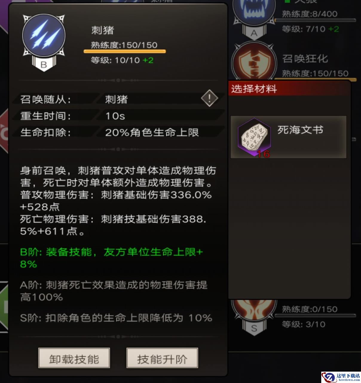 召唤流是最推荐新手冒险者选择的职业,这种职业的好处是前中期战斗力非常稳定。一转职业选择『驯兽师』后,便可以装备上[刺猪]技能,该技能为身前召唤生物,能够帮助冒险者抵抗住大量伤害。