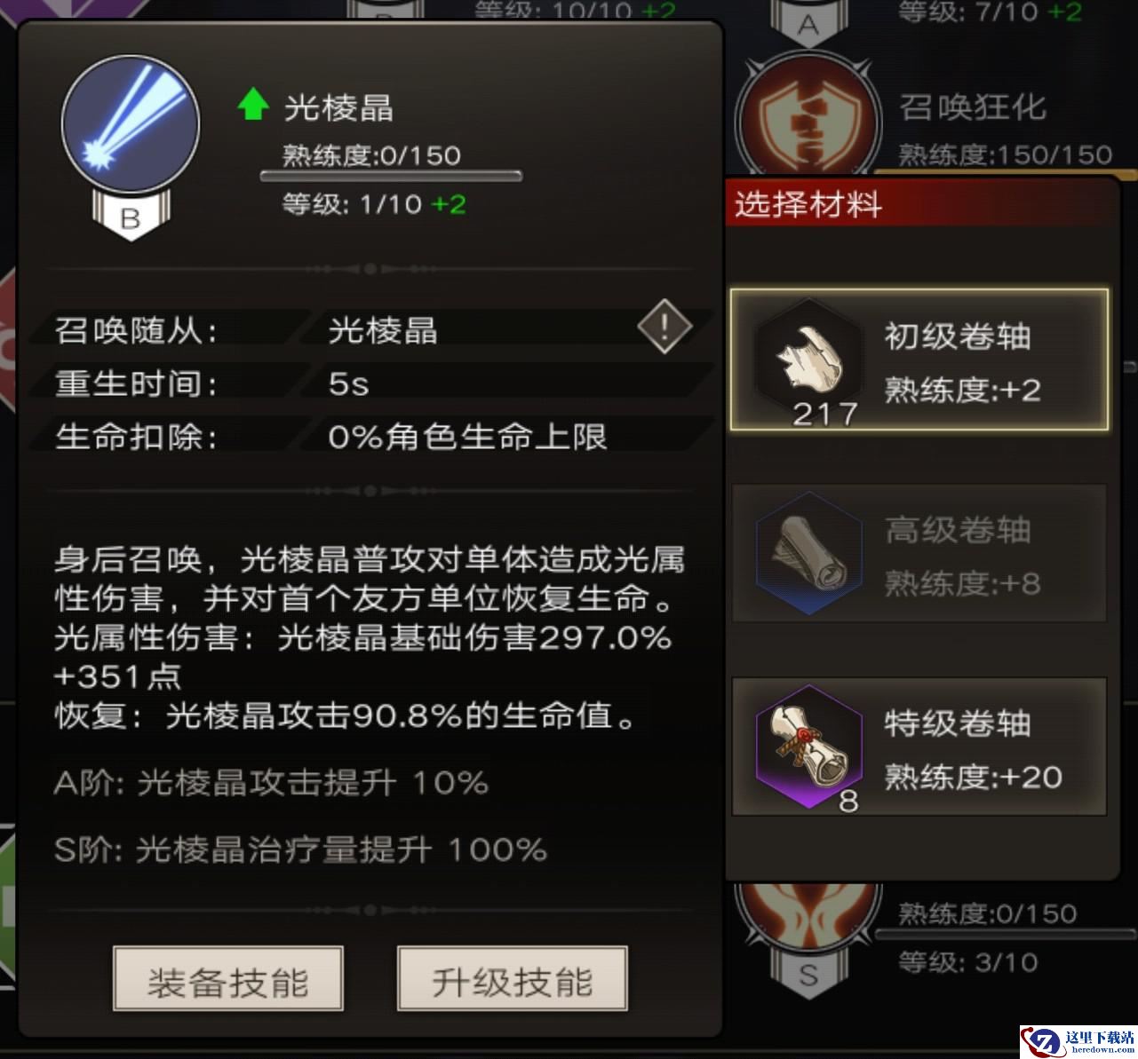四转职业这里不做推荐,相信到了选择四转职业时,冒险者内心已经有了想选择的职业。最后召唤流比较注重冒险者们的“秘”属性,因此要尽量提高这方面的能力;而在武器方面,则建议选择《长鞭》,这种武器天生就提供了有关召唤方面的加成。