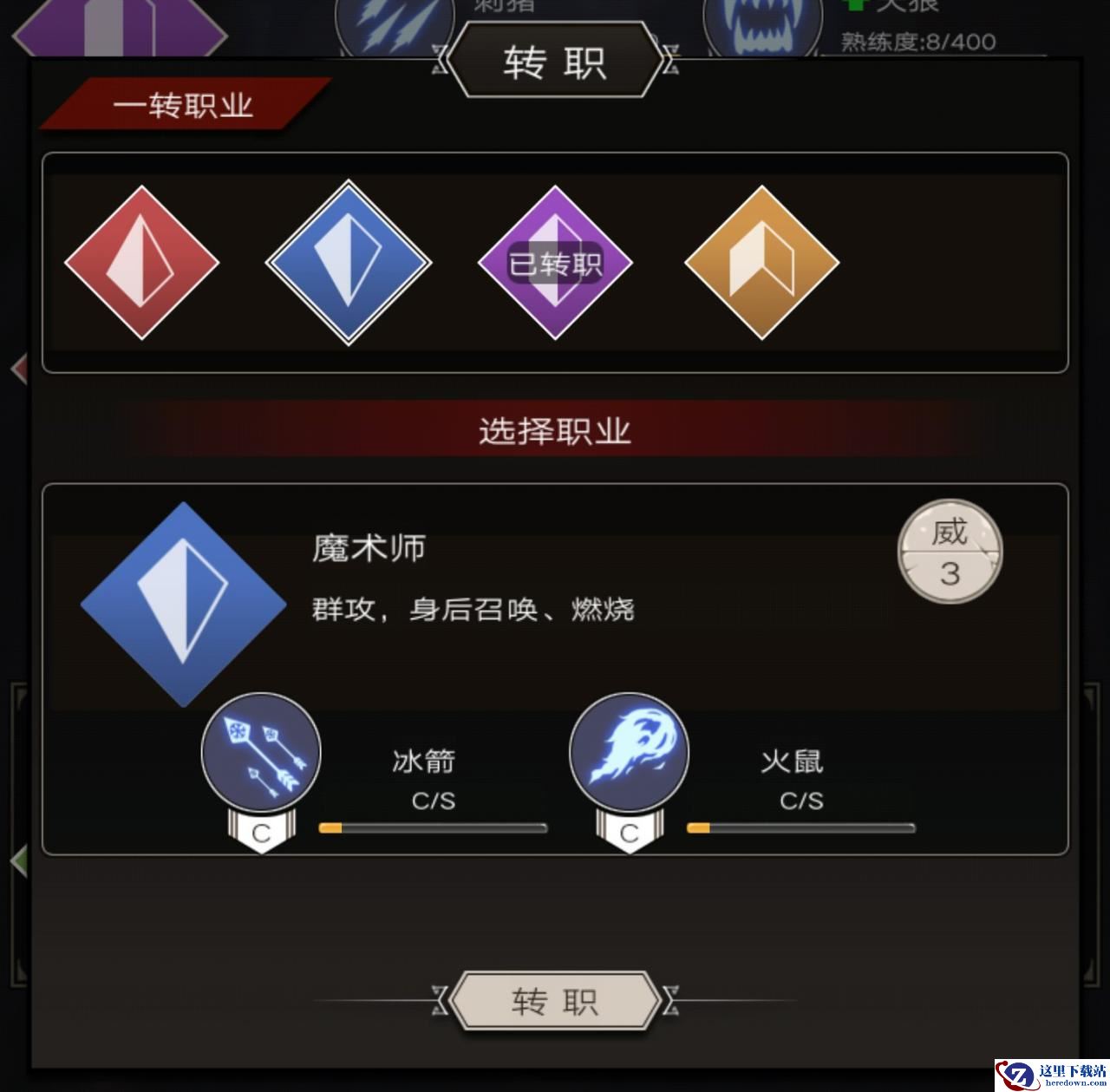 属性流就是利用各种属性攻击,来伤害敌人的一种流派。一转时选择『魔术师』,便可以凭借[冰箭]和[火鼠]两种技能来对敌方造成属性伤害了。