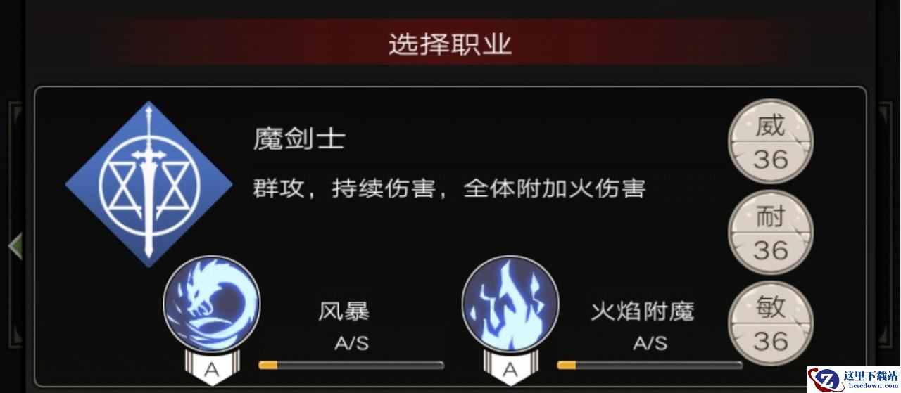 而『魔剑士』则能够使友方全体附加火属性伤害。