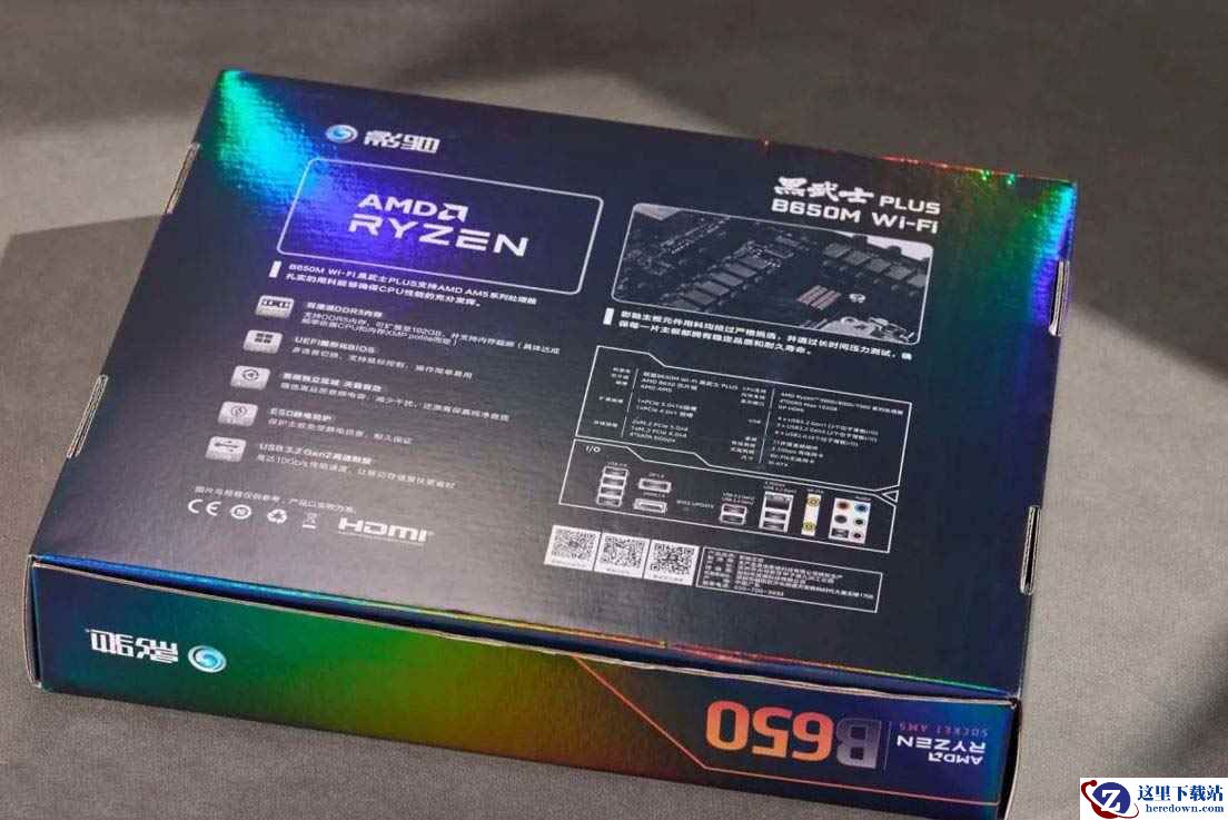 影驰联盟 B650M Wi-Fi 黑武士 PLUS 主板依旧采用彩盒包装设计,镭雕彩光配合纯黑配色比较时尚。