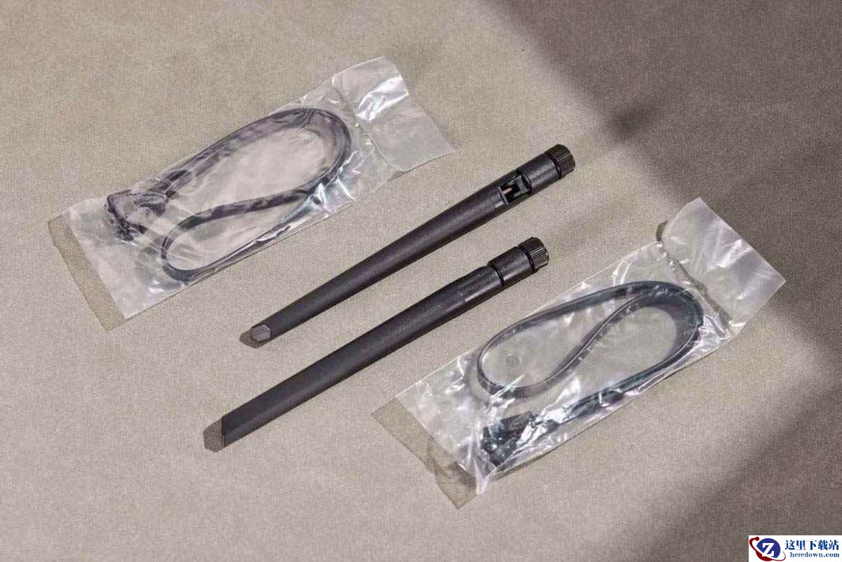 配件方面,包装内附有 1 对 Wi-Fi 6 天线、2 条 SATA 供电线、产品说明书等。