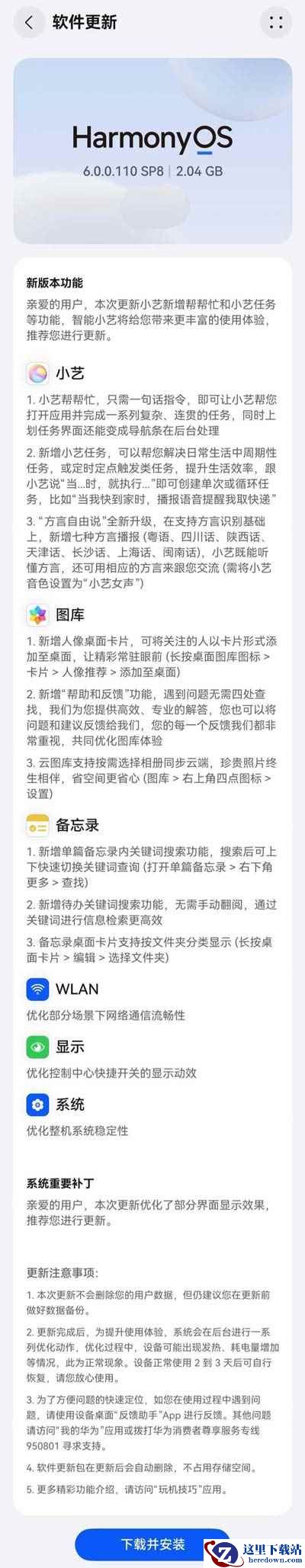 附华为鸿蒙 HarmonyOS 6.0.0.110 SP8 版本更新内容如下: