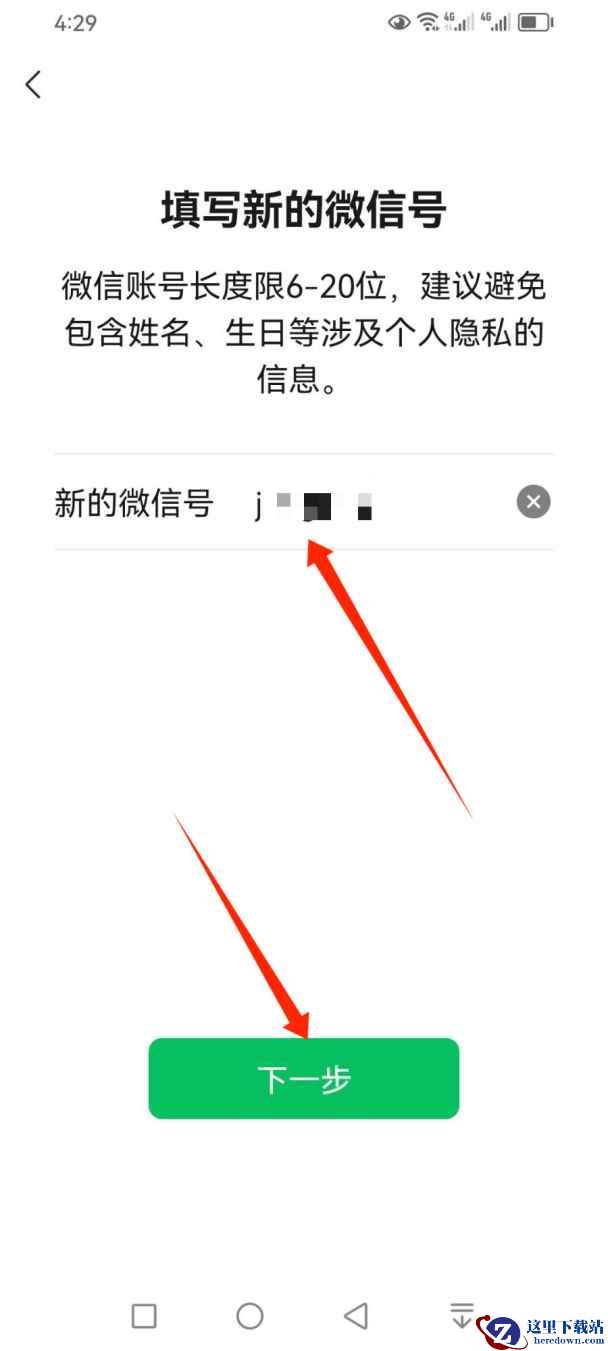 验证成功后,在打开的界面填写新的微信号,点击【下一步】。