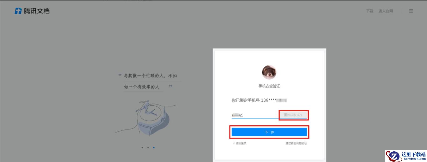 2)在手机安全验证界面,「 获取验证码 」,填写后点击「 下一步 」;