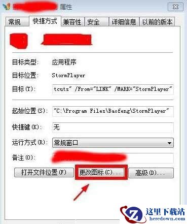 1、首先我们在更换图标的文件图标上鼠标右键点击,弹出菜单之后点击“属性”。在快捷方式的选项卡中点击“更改图标”。如下图所示: