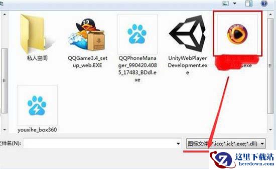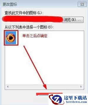 3、我们再点击浏览,把下载好的图标文件找出来,选中,点打开。如下图所示: