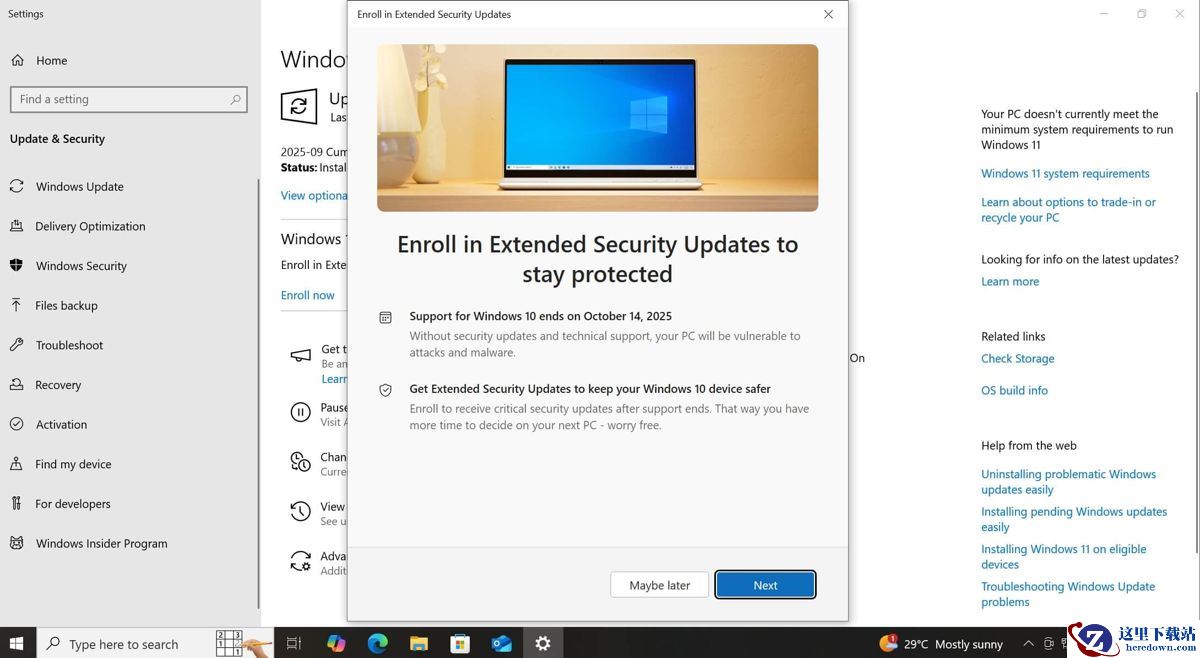 科技媒体 Windows Latest 于 11 月 9 日发布博文,报道称全球多地用户,尤其是欧洲用户,在尝试注册 Windows 10 系统的扩展安全更新(ESU)服务时遇到了障碍。