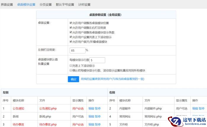 在「桌面模块设置」里勾选“允许自定义”,用户即可在「控制面板」自由拖放、隐藏或更换经典主题下的桌面区块;未勾选则全员锁定统一布局。