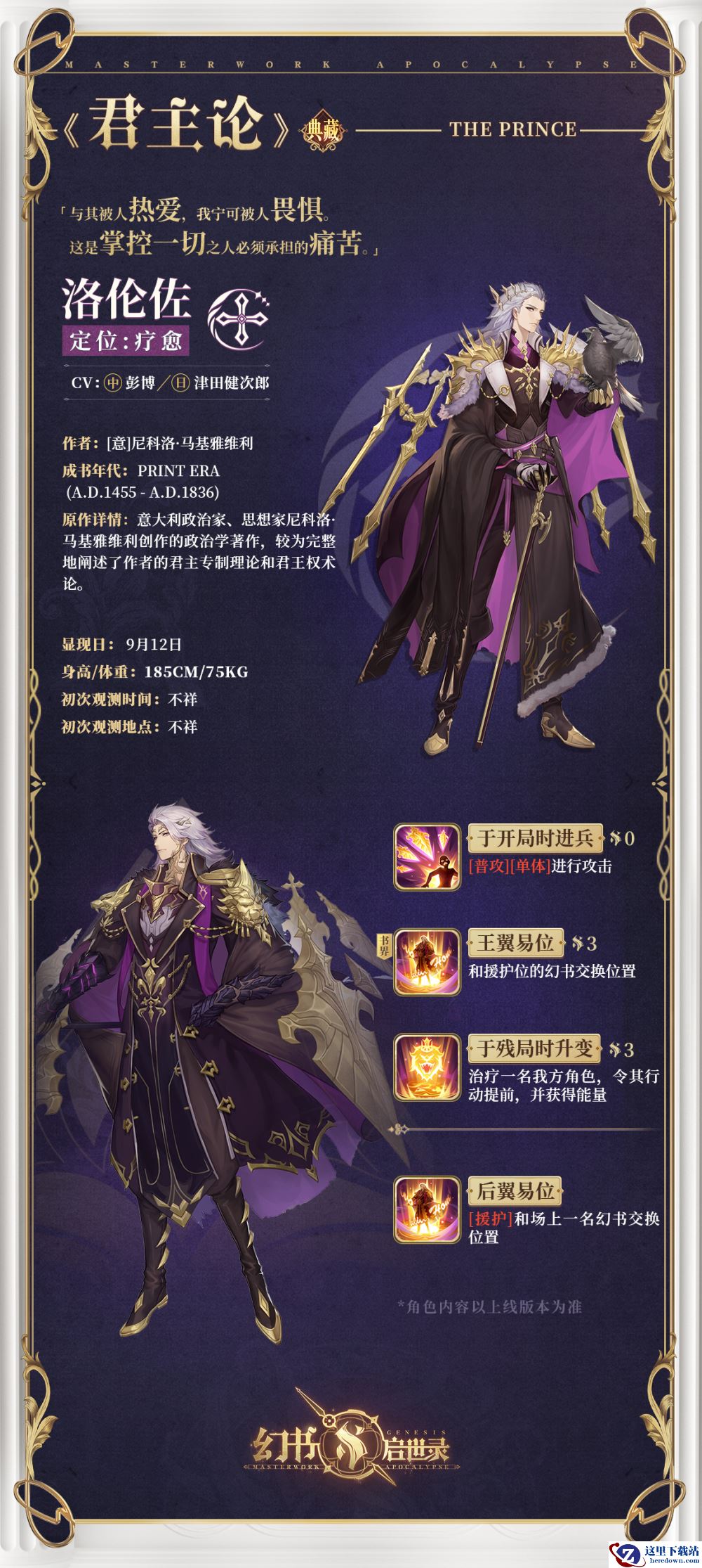 《君主论》·洛伦佐光临阿克夏书馆,他深谙权谋,权杖一响,作为君王的他,杀伐果断,教众人俯首称臣,宛若雄鹰用双翅划破了宁静,将乌云撕裂,只为迎接属于他的黎明。