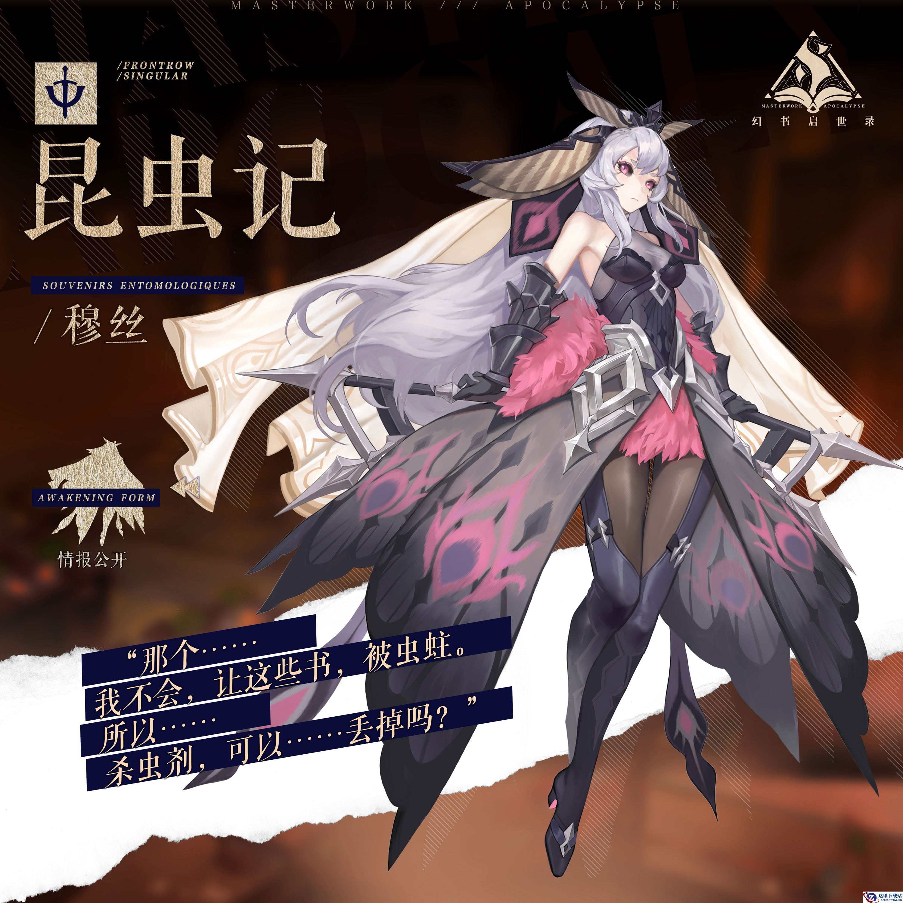 由飞蛾化身而来的穆丝拥有着昆虫的习性,因而并不善于与人类沟通。她虽寡言而又沉默,却拥有着极为温柔的内心。飞蛾的趋光性牢牢地印刻在她生命的脉络之中,而这样纯粹的基因让她拥有了无可比拟的执着与坚定。她是英勇的战士,她拥有着为守护馆主而牺牲自己的觉悟。