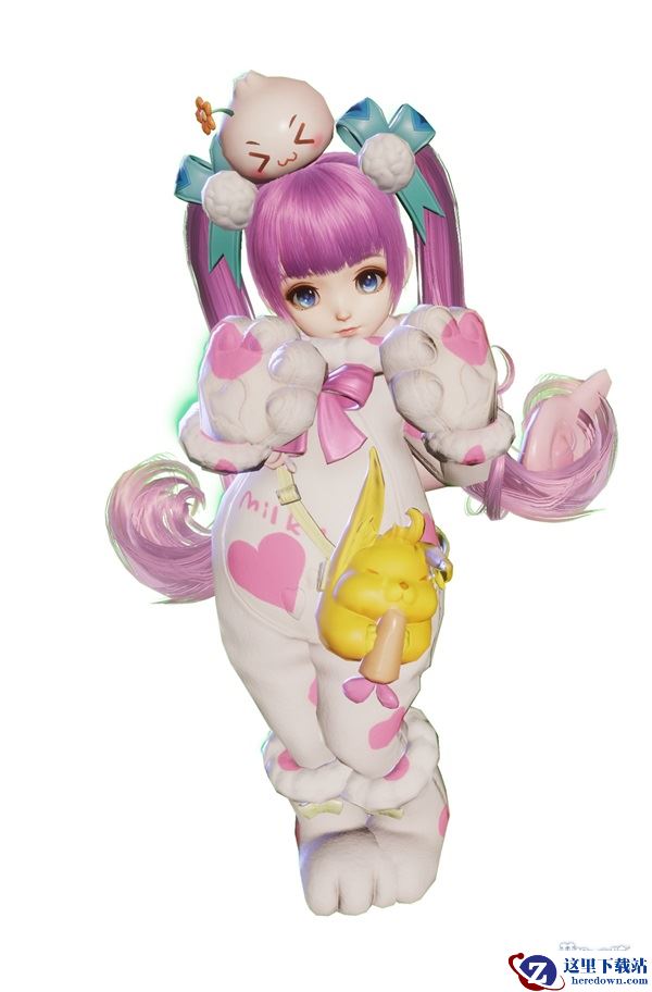 作为《梦想新大陆》半周年庆典重磅推出的新款免费时装,甜蜜奶罐采用了绒面质感的设计,有着弹性和丝滑的触感,配上爱心的花纹,是不是很可爱呢?宠物包包酱则是作为头饰元素被植入到了这款新时装中,再加上猫爪,粉红爱心,蝴蝶结……当这些元素融合在一起,穿戴在身上,每一天都会有甜蜜的好心情!