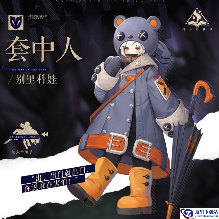 继承了《套中人》意志的别里科娃也拥有着异于其他幻书的个性。于她而言,这个光怪陆离的世界上充斥着形迹可疑的古怪人类,以及各式各样带来伤害的陷阱。因而,当其它幻书努力学着与这个世界打交道时,她却选择将自己裹在层层的套子之中。而这套子,则是她最为坚固的壁垒。