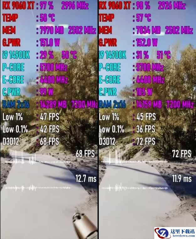 以下将分别测试七款游戏,均采用1080P画质模式,以下系列图片中左边代表PCIe 3.0平台,右边代表PCIe 5.0平台。