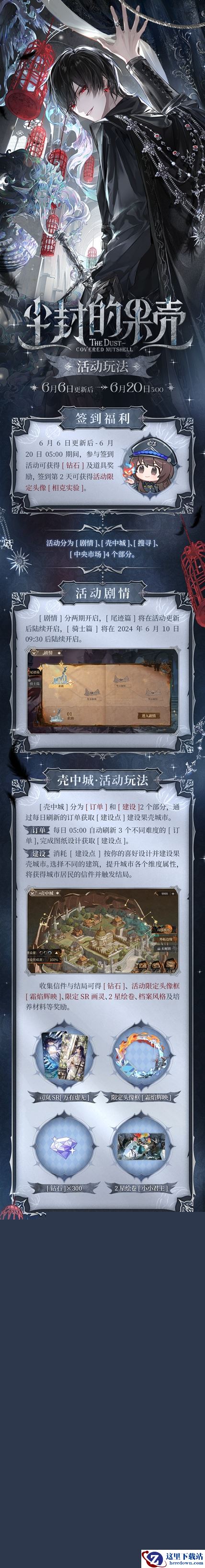 6月6日更新后 - 6月20日05:00,「尘封的果壳」活动开启。参与活动[壳中城]玩法,可免费获得司岚SR[万有虚无]。
