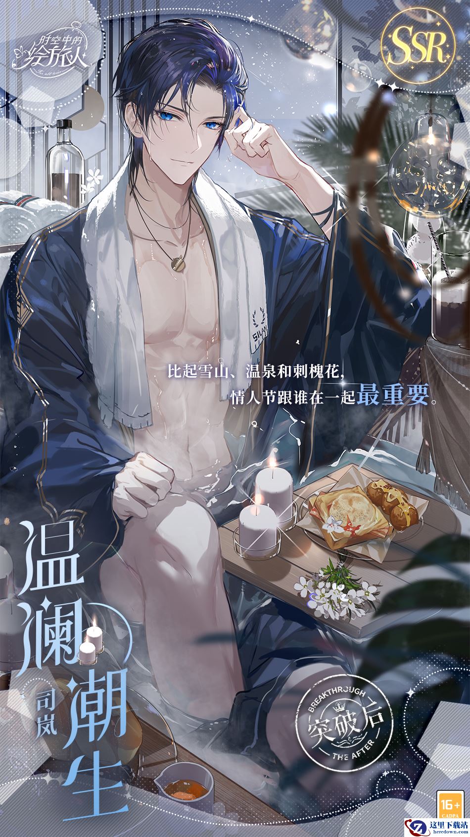 活动[温泉小铺]中新增[温泉Q版画灵礼包],可兑换艾因·[山中温泉]、路辰·[私汤预约]、罗夏·[完美画作]、司岚·[品鉴研讨]、叶瑄·[秘密时光]。小铺中共有礼包30个。初次获取角色温泉Q版画灵时,可解锁专属短信。