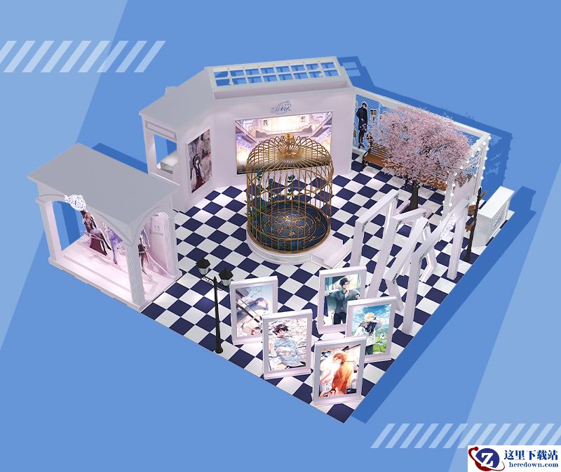 《时空中的绘旅人》展位位于N3场馆6号门附近。参加过内测的小伙伴应该对展台中心场景十分熟悉,这就是游戏开篇“荆棘鸟笼”的实地场景!各位玩家可以自行进入其中拍照留念。除鸟笼外,现场还融合画廊、画框等游戏元素搭建了签到、抽奖、体验、周边、签绘五大功能区,希望能给前来展台的玩家沉浸式的体验。