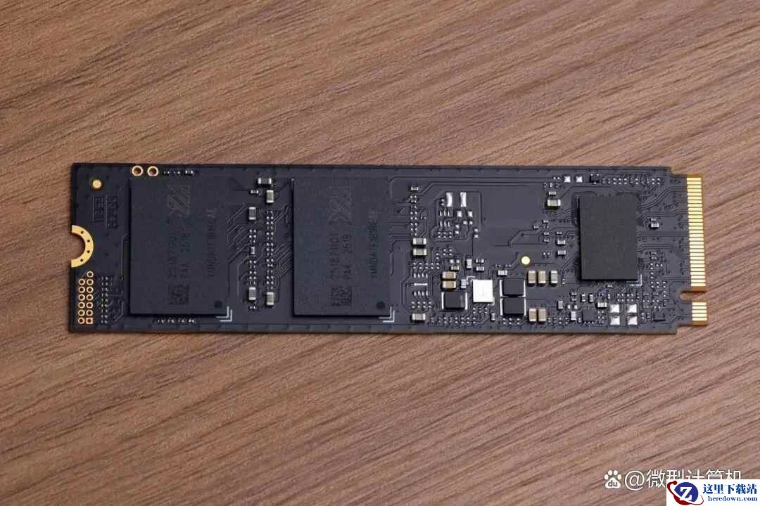 撕下盘体上的标签,我们可以看到这款固态硬盘采用了全新的主控与闪存芯片。首先它的主控芯片换为更加先进、基于DRAMLESS架构(无独立缓存)的PCIe 4.0 x4 4通道主控,支持HMB主机内存缓冲技术,可占用少量系统内存来临时保存已从闪存读取的数据、需要写入闪存的数据,以及地址映射表,从而有效提升SSD的I/O性能,无须再使用独立的内存颗粒作缓存,可有效降低SSD的功耗与发热量。搭配SLC Cache智能缓存技术的运用,SSD能够提供稳定、高速的传输体验效果。
