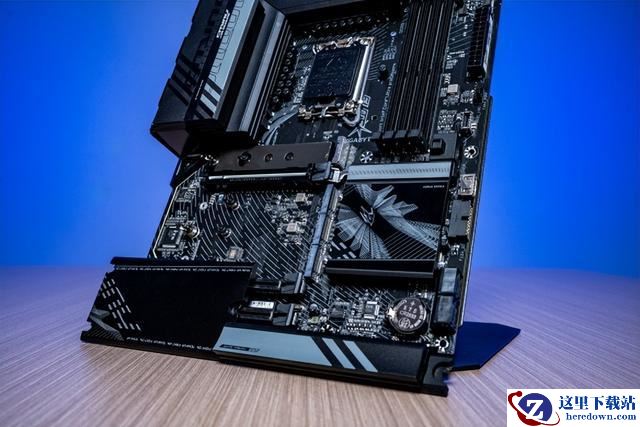 在硬件的稳定运行中,散热是至关重要的一环,技嘉 Z890 AORUS ELITE WIFI7 小雕主板配备的VRM 供电模块配备的Epic VRM散热器,堪称散热黑科技。其采用了独特的多剖沟设计,允许气流自由且高效地通过,极大地增强了空气的流动性。与传统散热器相比,这种设计大幅增加了散热器的表面积,并且采用一体式散热设计,这种设计方式相比于普通主板的多件式解决方案有着更多的优点,能够提供更加强大的散热性能。