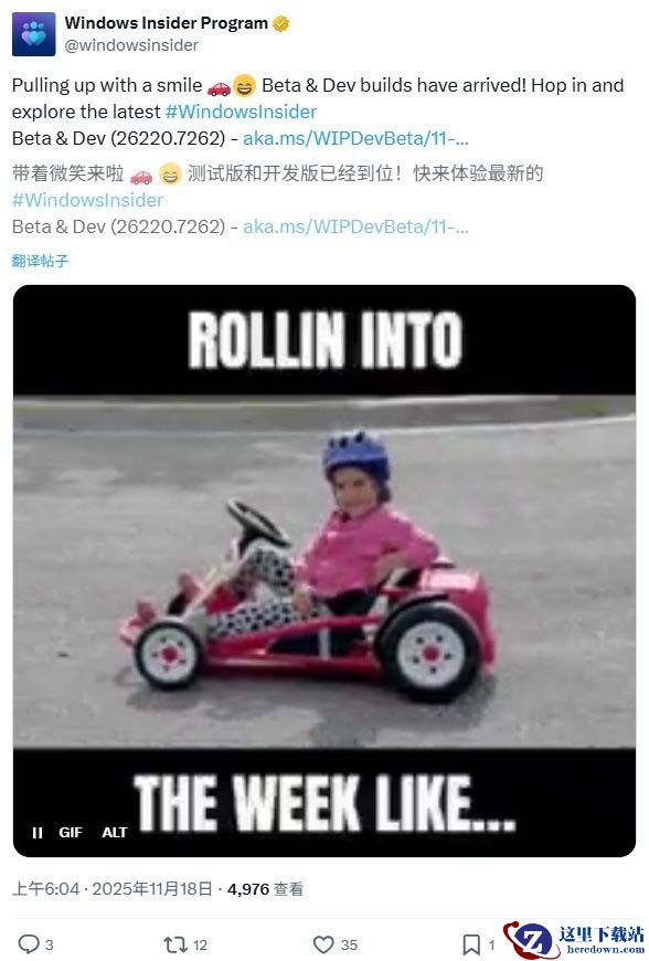作为提醒,我们将在 Windows 11,版本 25H2 的 Dev 和 Beta 渠道中提供相同的版本。