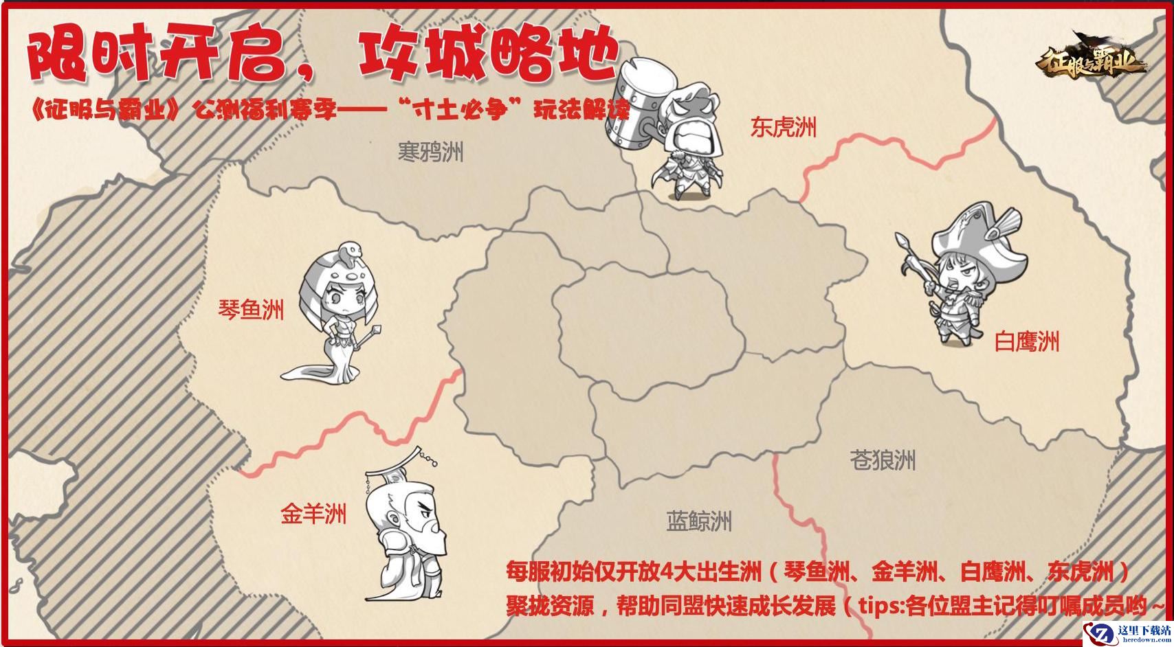 “富甲天下”赛季的第一个变化,就是赛季初仅仅开放4大出生洲供君主们选择。当然了,为了解决资源的问题,我们提升高级资源地的密集度,助力君主、同盟快速成长。