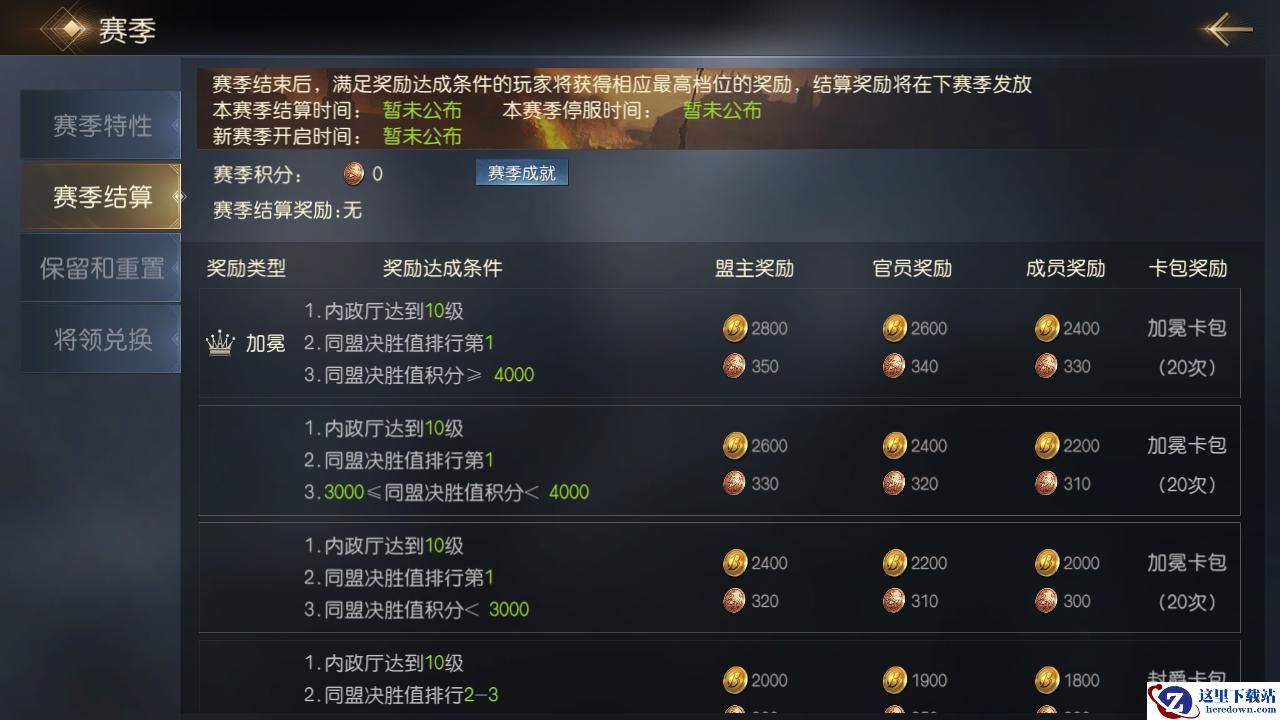 赛季结算时,系统将根据同盟决胜值排名以及所获得的决胜值分值,来决定同盟获得的奖励内容。这种设定,能让有实力、有谋略的同盟(不论大小)都有机会分到一杯羹。同时,这种设定更符合策略游戏的要求。