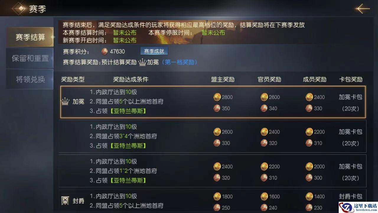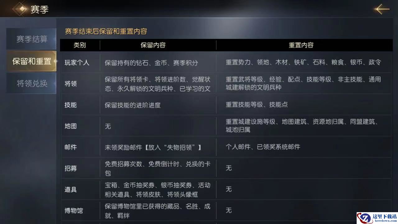 此外,赛季中将领、技能、金币、钻石等道具会保留,已经解锁的文明兵种、进阶状态、觉醒状态同样保留,而建筑等级、技能点、同盟数据会重置。玩家们在期待新赛季的同时,不要忘了为当前赛季的结算做好准备工作。
